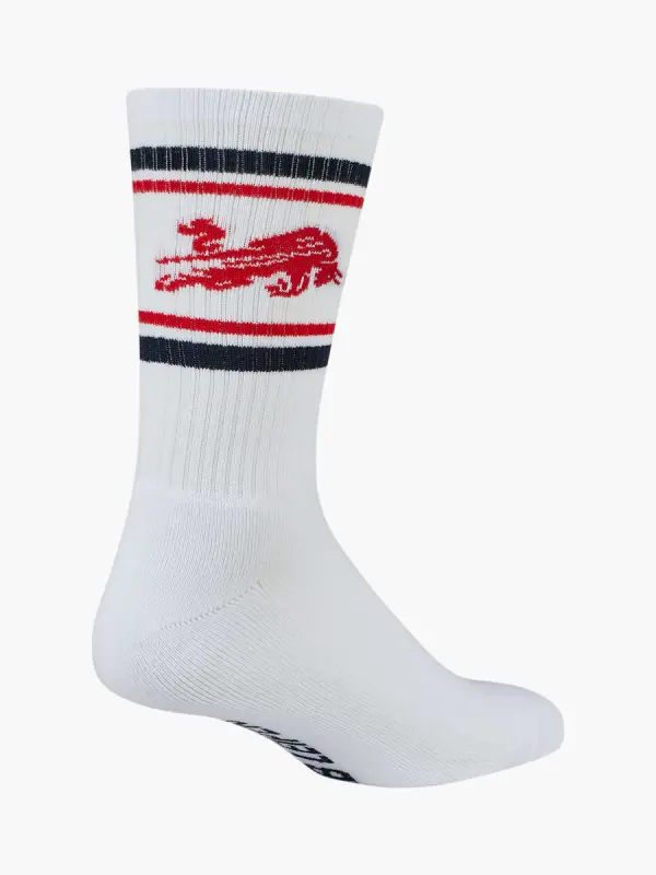 Make a statement with the RB Leipzig Dynamic Bull socks. Featuring a bold Dynamic Bull and sporty stripe design, these socks combine style and comfort for any occasion.