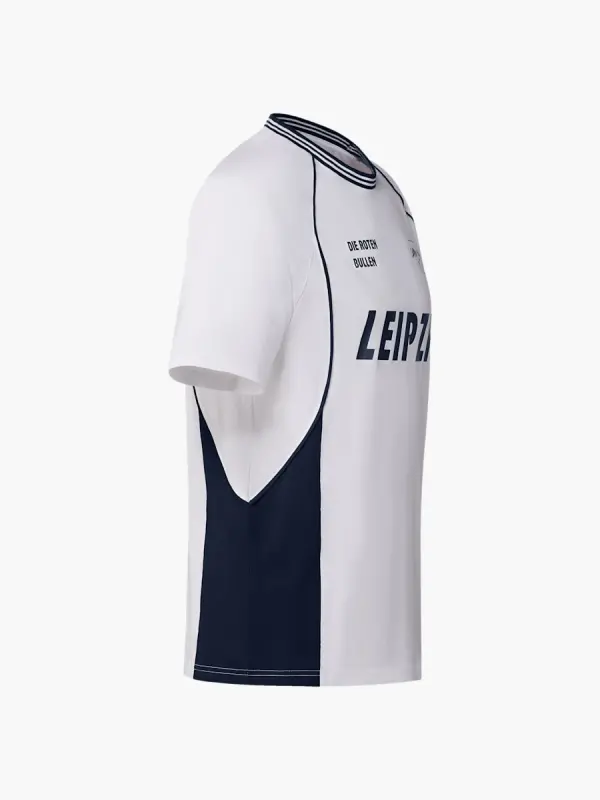 - Printed RB Leipzig crest, Die Roten Bullen lettering, and Leipzig print on the chest