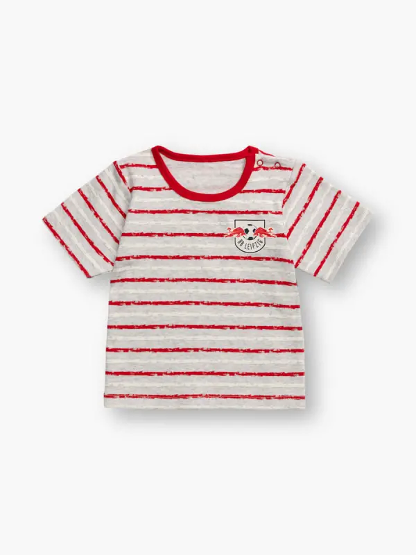 The perfect kit for your newest team member. Kick off their love for football in this comfortable cotton T-Shirt for babies, featuring sporty stripes in team colours and RB Leipzig's crest for extra pride. It also features popper fasteners on the shoulder to make changing outfits even easier.
